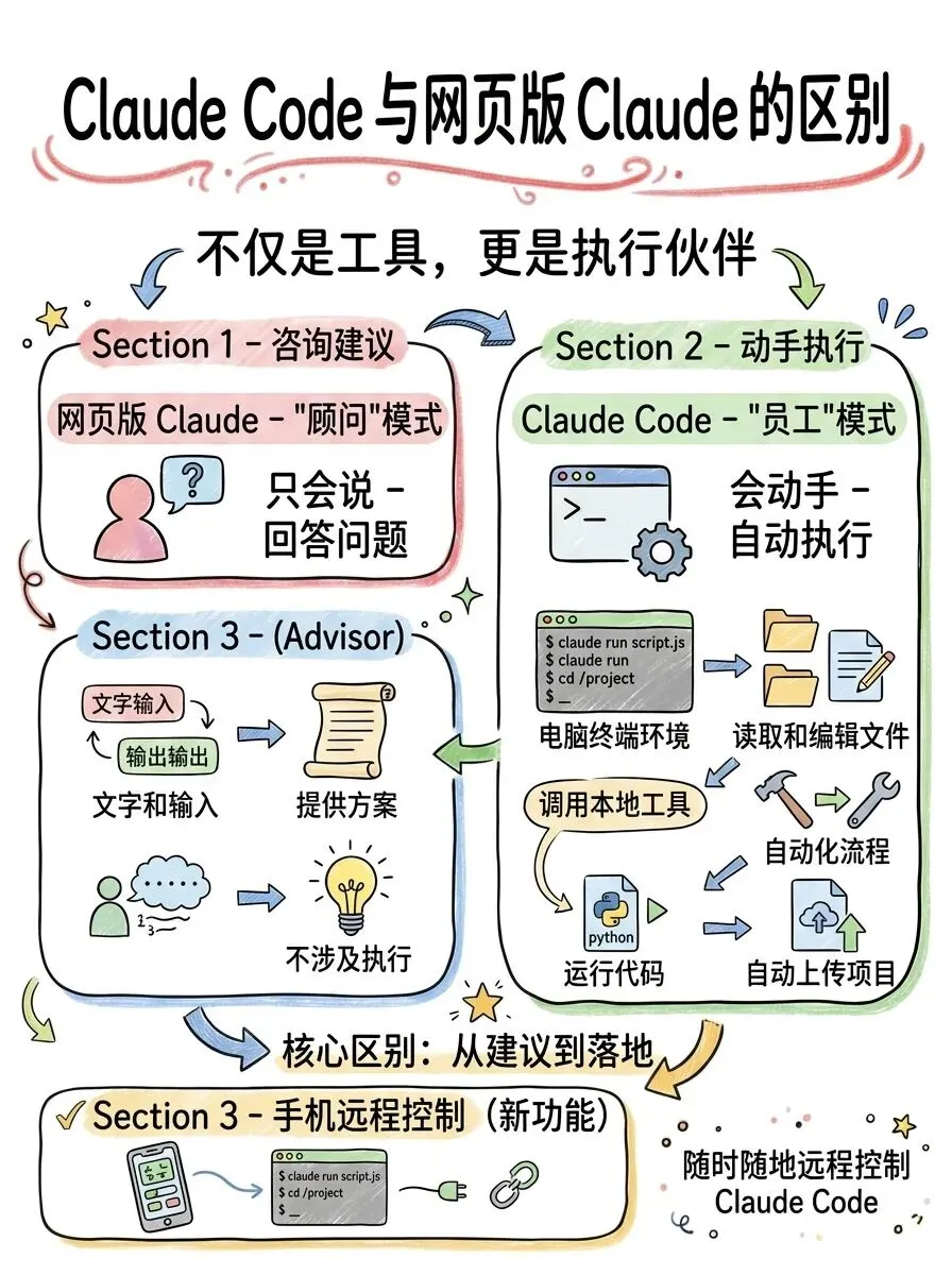 网页版 Claude 是"顾问",Claude Code 是"员工"。