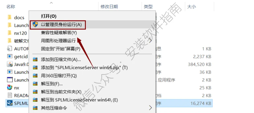 8.返回刚开始解压出来的安装包,以管理员身份运行SPLMLicenseServer win64程序