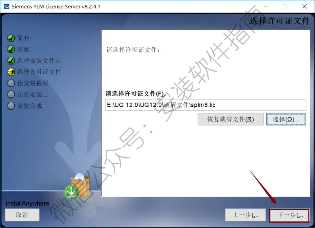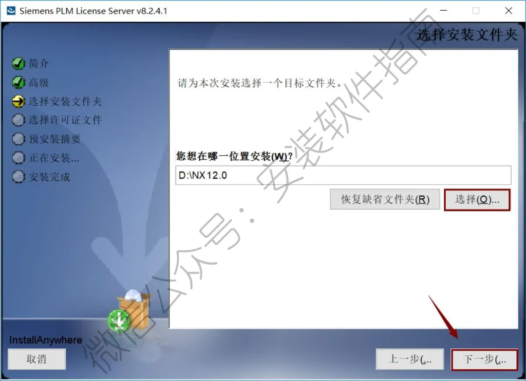38.选择第11步中的NX12.0文件夹,点击“下一步”。