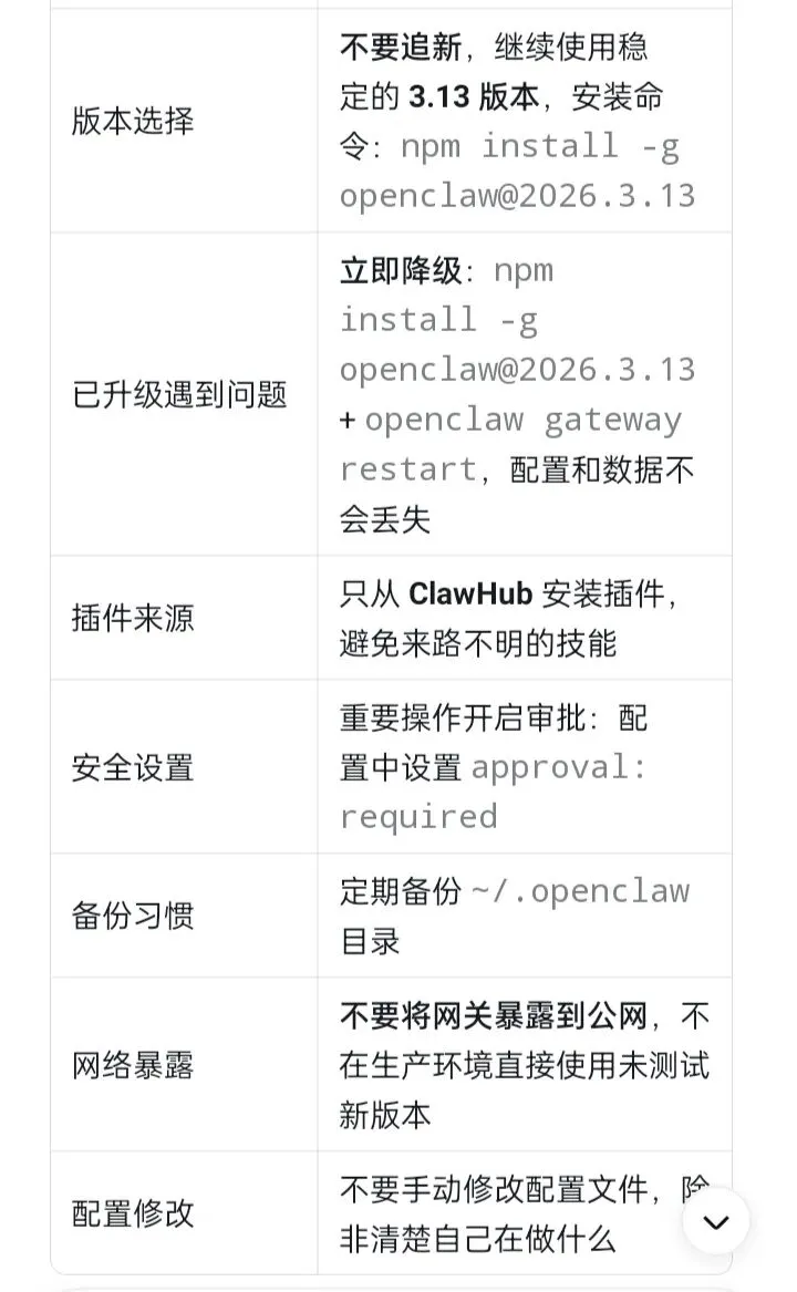 这些问题的根本原因,是 OpenClaw 团队在 快速演进 和 工程稳定性 之间还没找到完美平衡。但对于普通用户来说,这就成了“升级即翻车”的糟糕体验。