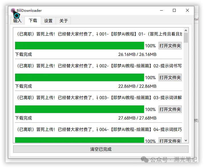 所有设置确认后点击「提交」,软件即刻开始下载,页面实时显示下载进度、文件大小,下载完成后直接在保存路径查看即可,还支持重新下载、清空已完成列表。