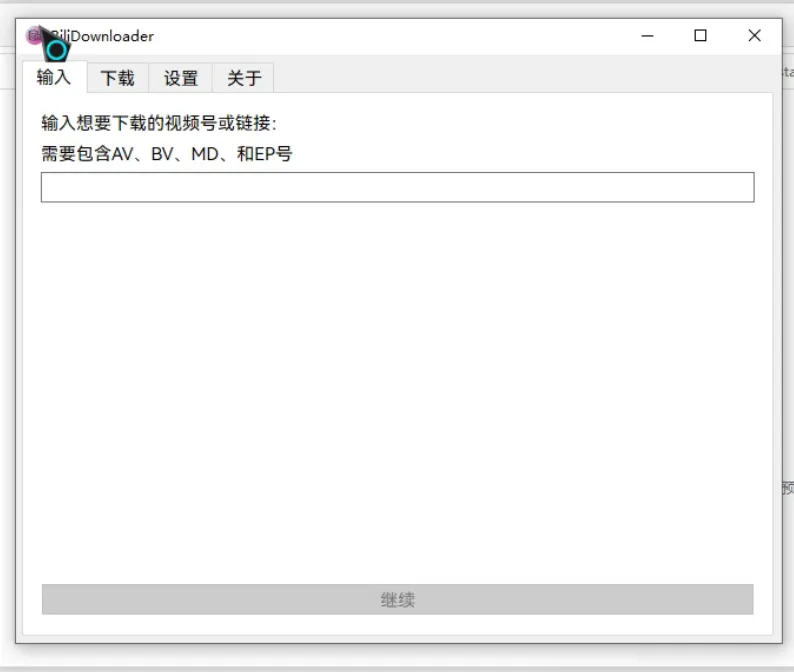 打开软件后,在输入框粘贴B站视频的**BV号/AV号**,或番剧的**MD号/EP号**,点击「继续」,软件会自动解析视频信息,展示视频标题、UP主、简介等内容。