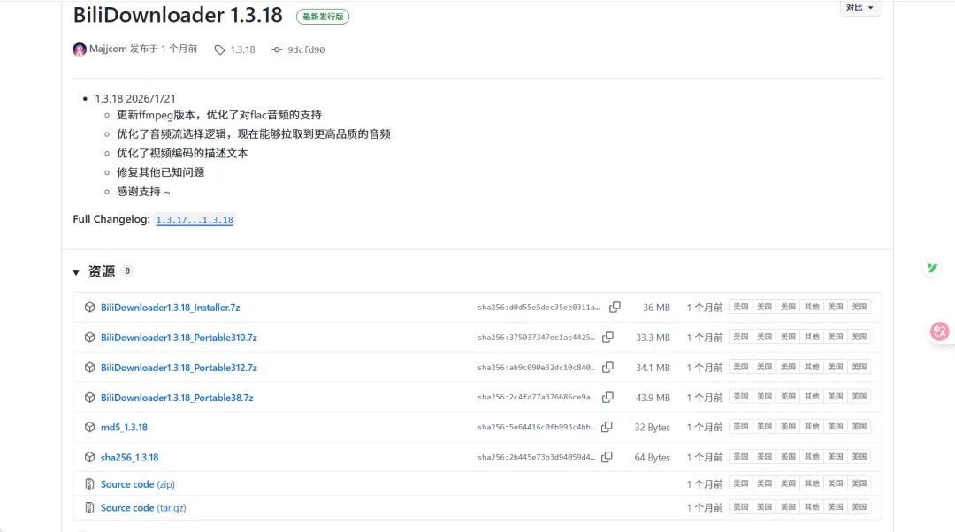 作为开源项目,BiliDownloader的所有代码均在GitHub开源可查,版本持续更新,目前最新版本为1.3.18,功能不断优化完善。