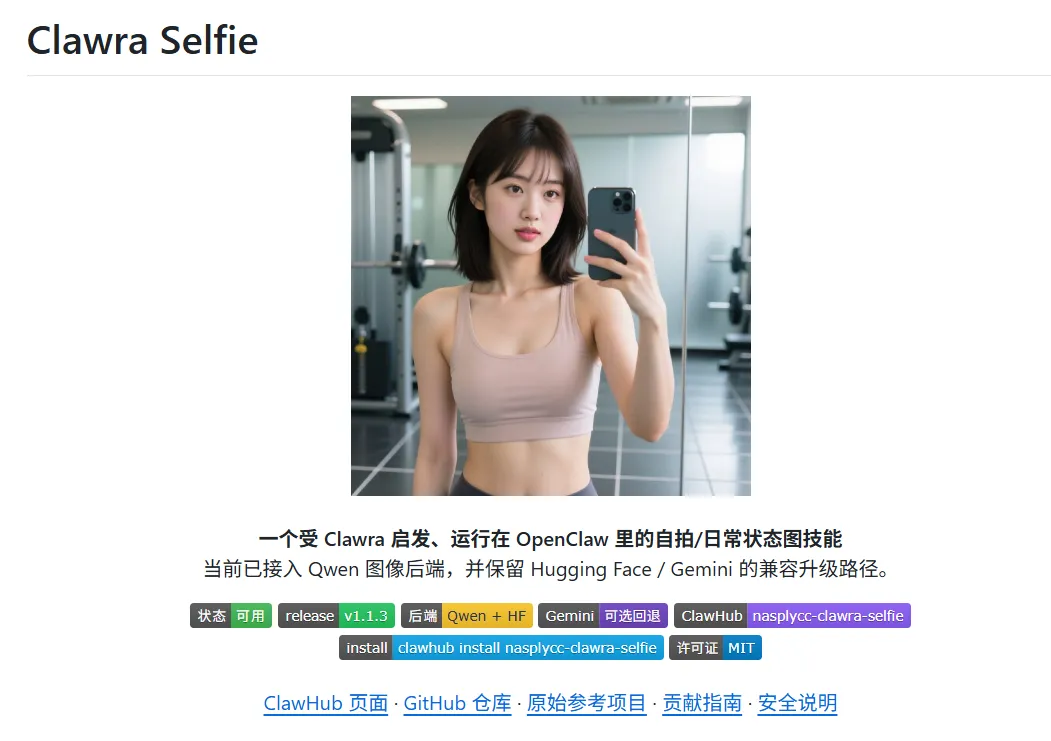 项目地址:https://github.com/nasplycc/clawra-selfie