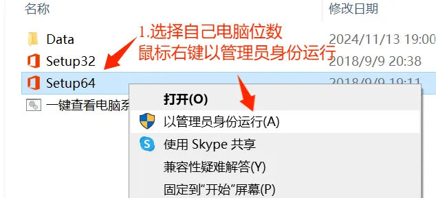 5.选择自己电脑位数的安装程序,以管理员身份运行【setup.exe】。