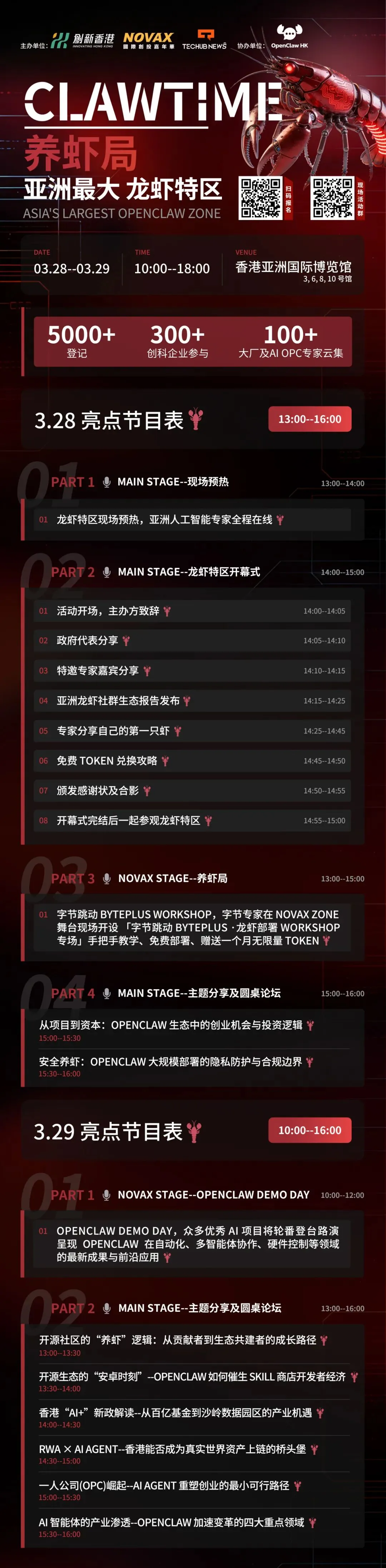 3月28-29日,CLAWTIME 养“虾”局,全日程精彩活动不停歇,香港亚洲国际博览馆,不见不散!
