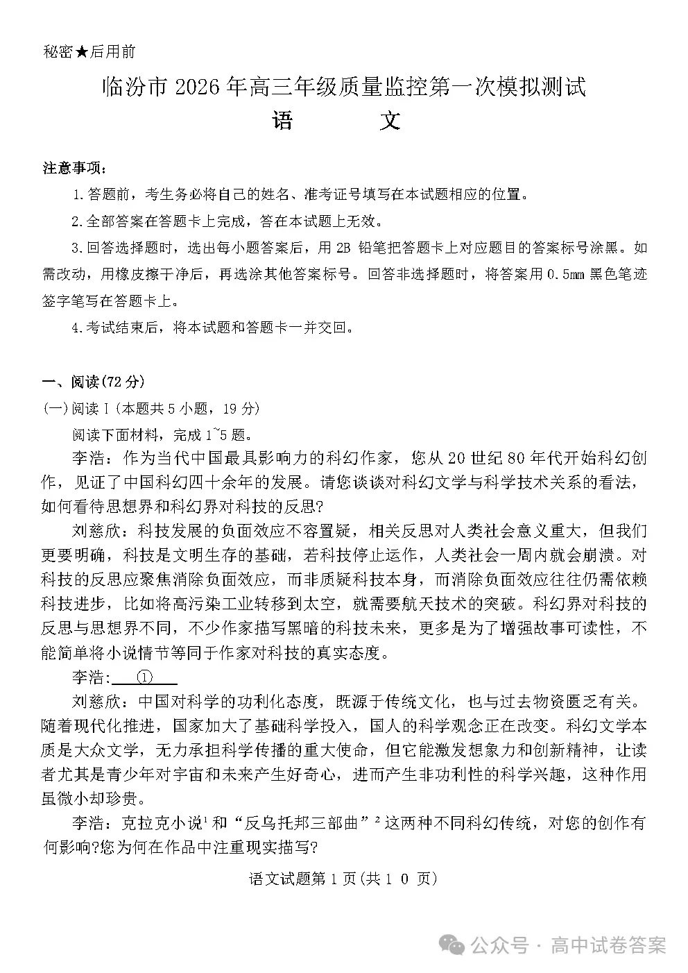 2026临汾一模全科下载临汾一模链接: https://pan.baidu.com/s/1RUyBacONThOMxI_PI9ZZvg?pwd=6666 全科请下载查看,文章仅提供部分预览文末点击"阅读原文"即可下载