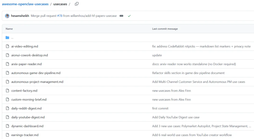 https://github.com/hesamsheikh/awesome-openclaw-usecases