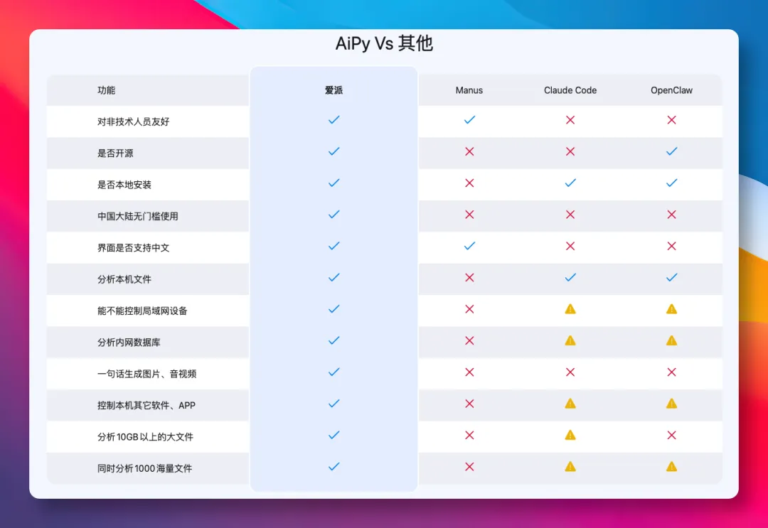 而 AiPy 选择从这里切入,把安装门槛压到最低,把数据安全做到本地,把执行能力交给 Python 来兜底。