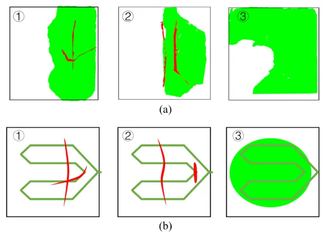实验结果表明,该方法能准确识别层理面上裂缝点位置与开度,反演结果与实际裂缝形态高度一致。根据应变响应特征,将裂缝扩展过程划分为起裂、延伸和闭合三个阶段。在延伸阶段,各裂缝点最大开度达23.0 μm,裂缝位置基本不变。薄板样品应变响应显著高于厚板样品,最大应变分别为1027 με和167 με。该方法相比传统微地震监测具有更高的空间分辨率和连续性,能够有效捕捉微裂缝扩展过程。研究为复杂层状储层水力裂缝动态监测提供了可靠工具,未来可结合人工智能实现裂缝形态实时可视化。