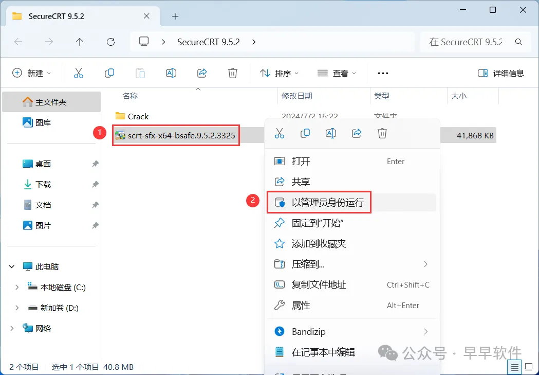 1、下载SecureCRT 9.5.2软件安装包到电脑上,右键选择【解压到SecureCRT 9.5.2\】