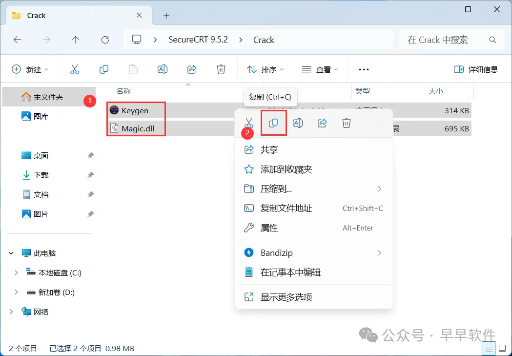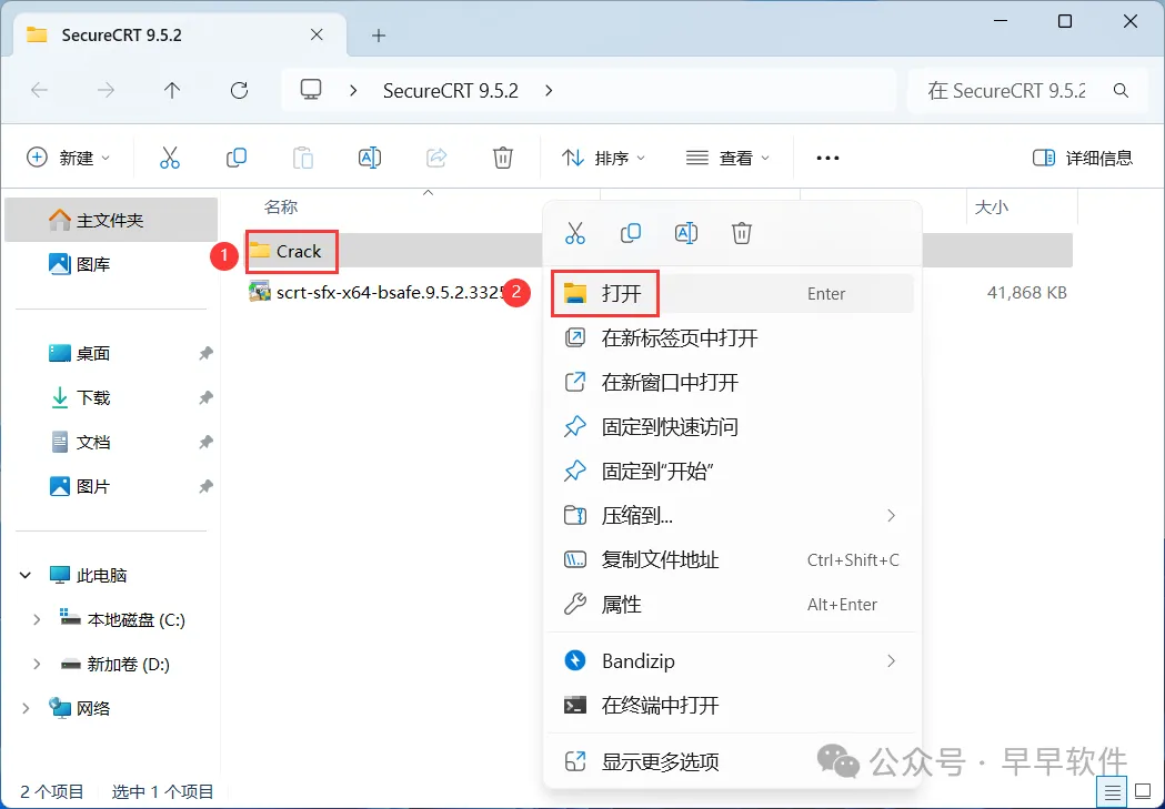 14、回到SecureCRT 9.5.2文件夹,找到【Crack】文件夹,右键【打开】它