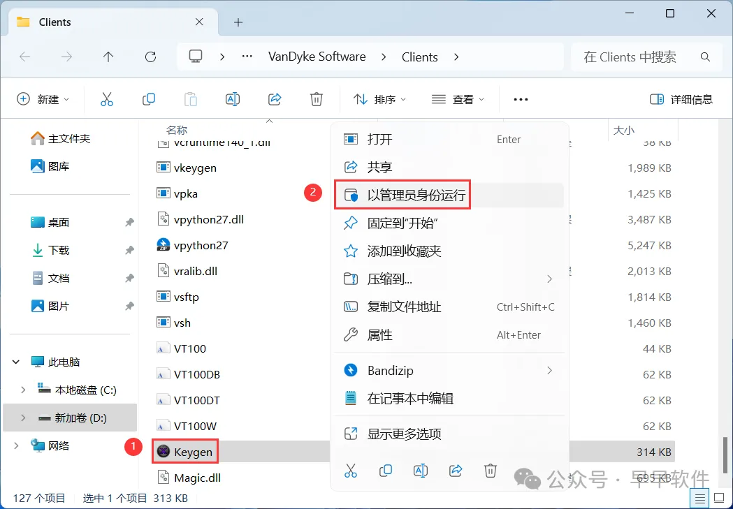 18、找到粘贴的【Keygen】程序,右键选择【以管理员身份运行】它