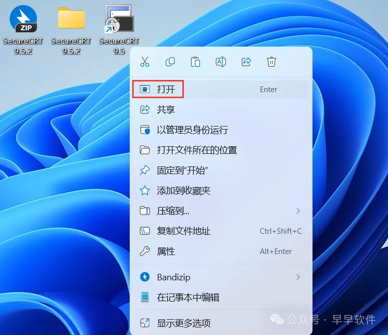 22、回到桌面,右键桌面上的【SecureCRT 9.5软件图标】,点击【打开】