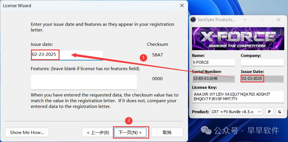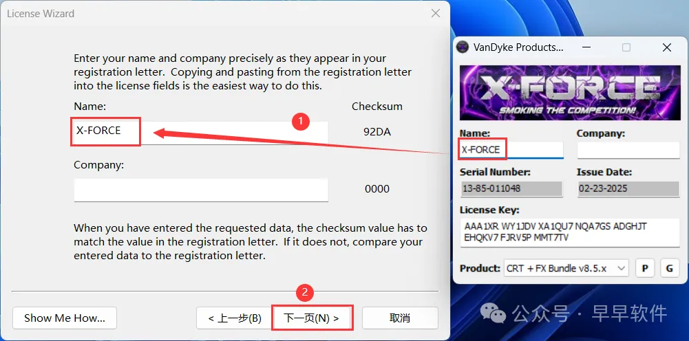 29、将程序的Serial Number输入到软件的Serial Number内,将程序的License Key输入到软件的License Key内,再点击【下一页】