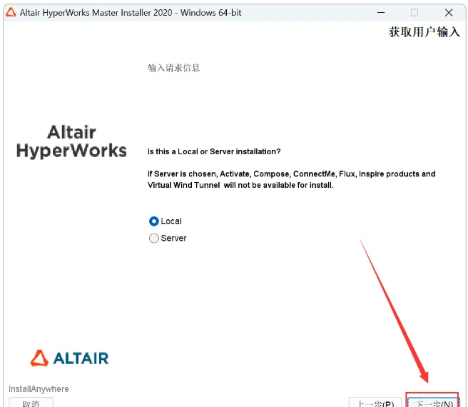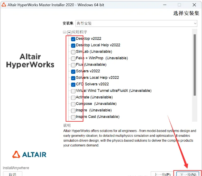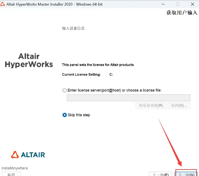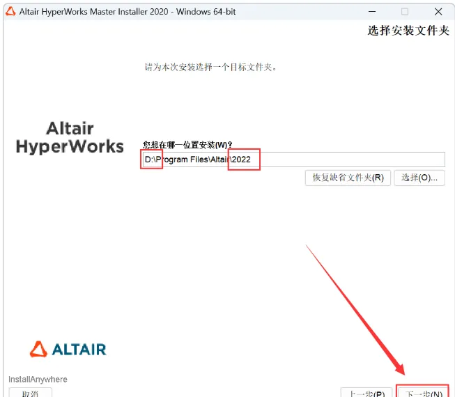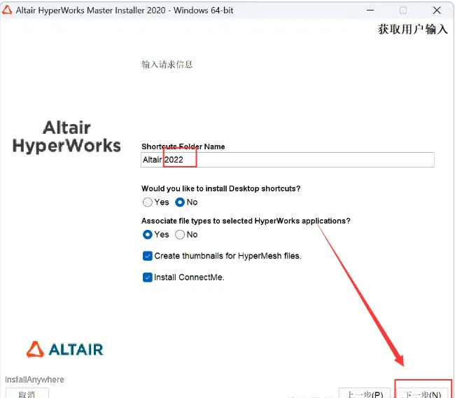 9.输入【Altair 2022】,点击【下一步】。