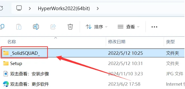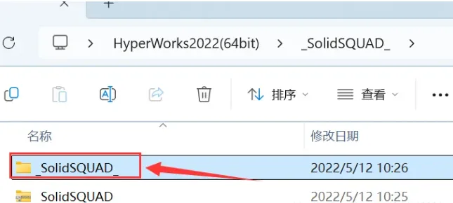 16.打开安装包解压后的【HyperWorks2022(64bit)】文件夹,双击打开【_SolidSQUAD_】文件夹。