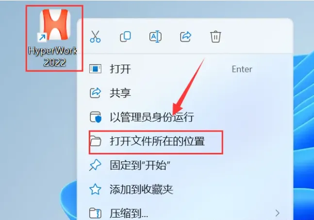 19.鼠标右击桌面【HyperWorks 2022】图标选择【打开文件所在的位置】。