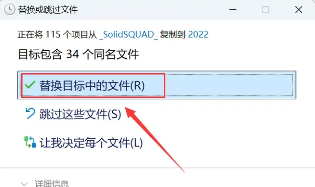 22.点击【替换目标中的文件】。