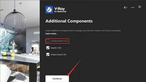 取消勾选【License Server5.5.2】,点击Continue。