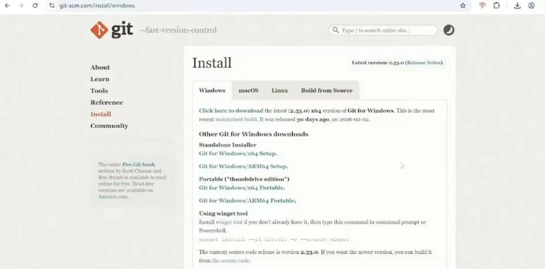 第三步:安装 Git:安装网址https://git-scm.com/install/windows