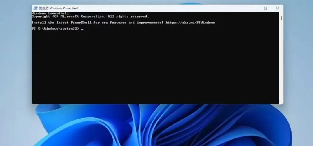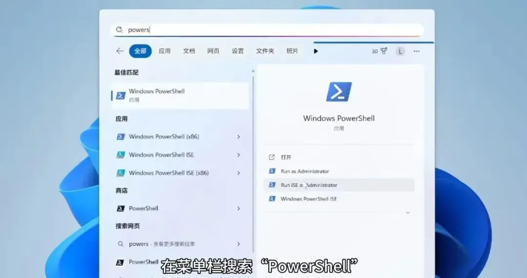 打开终端,在菜单栏搜索power shell,这里注意一定要选择以【管理员身份运行】,然后你的屏幕上就会出现一个大大的窗口如图: