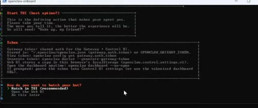 这个窗口一定不要关掉哦,等待一段时间后回到powershell窗口,它会问你选择启用小龙虾的方式