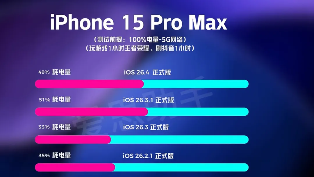 真相:这不仅仅是后台索引的问题。即便在升级24小时后,许多用户的续航依然没有恢复迹象,反而愈演愈烈。有博主实测,刷视频半小时耗电高达 15%,远超上一版本。
