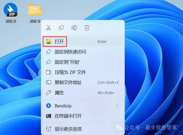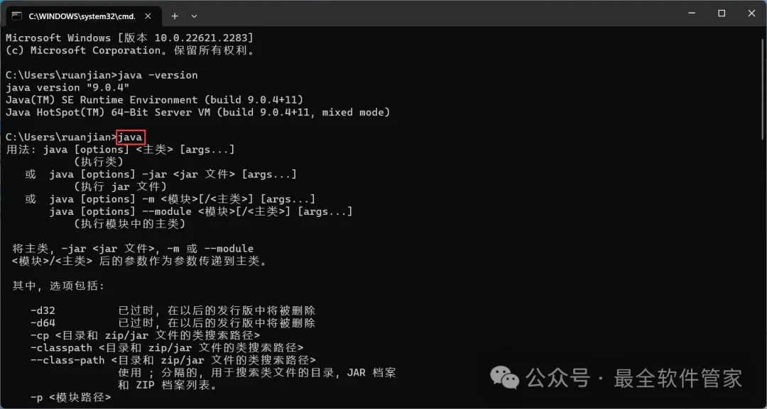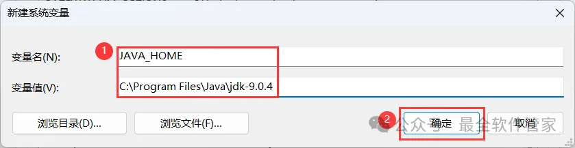 [不限速下载]:免费获取百度网盘不限速下载工具。公众号内回复:不限速[注意事项]:安装前请关闭网络、杀毒软件和防火墙,否则易安装失败。公众号内回复:1[解压软件]:小编用的解压软件是Bandizip,获取Bandizip软件安装包。公众号内回复:21、下载JDK 9软件安装包到电脑上,右键选择【解压到JDK 9\】3、找到【jdk-9…x64】应用程序,右键选择【以管理员身份运行】它10、回到桌面,右键桌面上的【此电脑图标】,点击【属性】 14、变量名输入:JAVA_HOME;变量值输入:C:\Program Files\Java\jdk-9.0.4,再点击【确定】16、变量名输入:CLASSPATH;变量值输入:.;% JAVA_HOME%\lib\tools.jar;% JAVA_HOME\lib\dt.jar,再点击【确定】17、在系统变量一栏,找到【Path】,选中它,再点击【编辑】 19、再变量值最后输入文本:;% JAVA_HOME%\bin,再点击【确定】22、回到桌面,按下快捷键【WIN图标+R】,输入【cmd】,再点击【确定】 23、输入:java -version,按下键盘上的【Enter】回车键,查看JDK版本号24、输入:java,,按下键盘上的【Enter】回车键,得到下列反馈 25、输入:javac,,按下键盘上的【Enter】回车键,得到下列反馈,则JDK安装及配置成功26、以上就是JDK 9软件安装的全过程,要是对你有帮助的话,请为小编点个赞! 免责声明:软件资源均来源于网络,仅供用户交流学习与研究使用,版权归属原版权方所有,版权争议与本公众号无关,用户本人下载后不能用作商业或非法用途,否则后果均由用户承担责任;如果您访问和下载此文件,表示您同意只将此软件用于参考、学习而非其他用途,否则一切后果请您自行承担,请于下载后24小时内删除,不允许用于商业用途,否则法律问题自行承担。如果您喜欢该软件,请支持正版软件,购买注册,得到更好的正版服务。