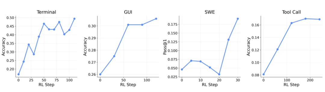 将OpenClaw-RL 这一框架应用于个人智能体时,智能体能够通过“被使用”而不断改进,从用户的再次提问、纠正和显式反馈中恢复会话信号。将其应用于通用智能体时,同样的基础设施支持在终端、GUI、SWE 和工具调用等场景下进行可扩展的强化学习;此外,论文还展示了过程奖励在这些场景中的作用。