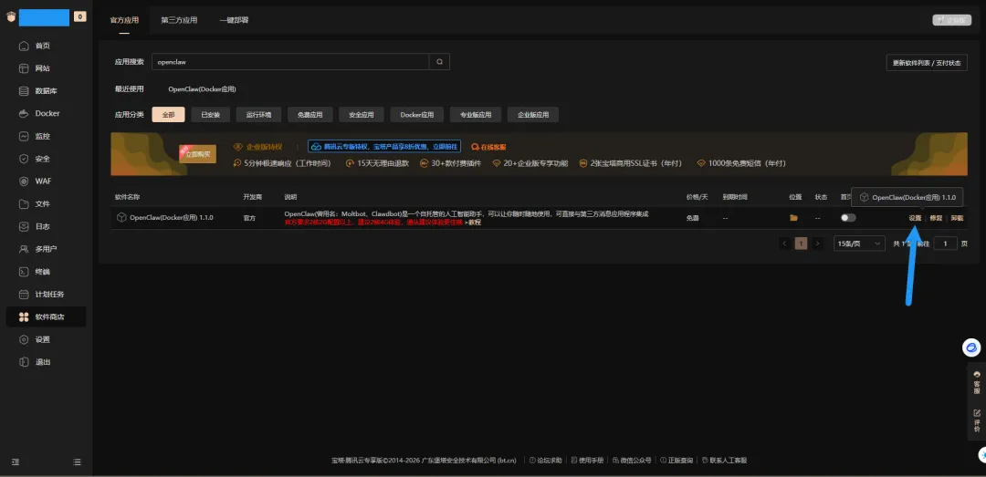 本文基于 宝塔面板v11.5.0 版本以及宝塔面板插件 OpenClaw v1.1.0 版本