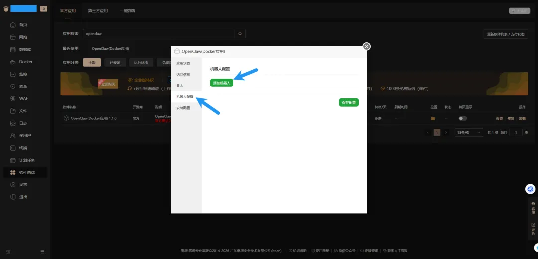 点击机器人配置,添加机器人