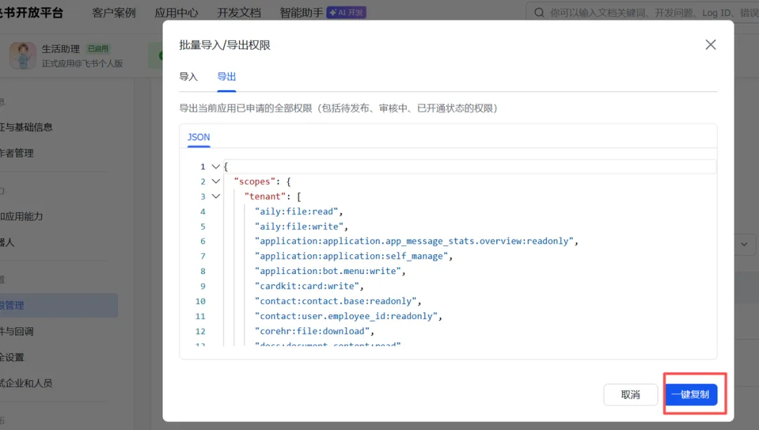 👉 直接复制"生活助理"的权限