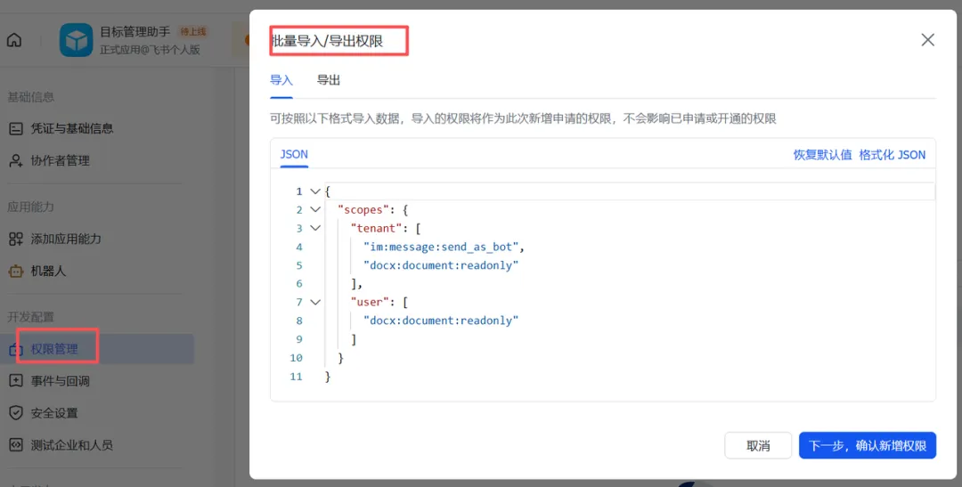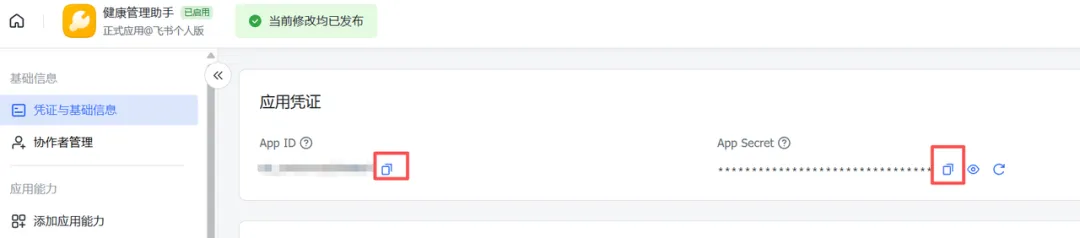 目标助理:App ID = cli_xxx,App Secret = xxx健康助理:App ID = cli_xxx,App Secret = xxx