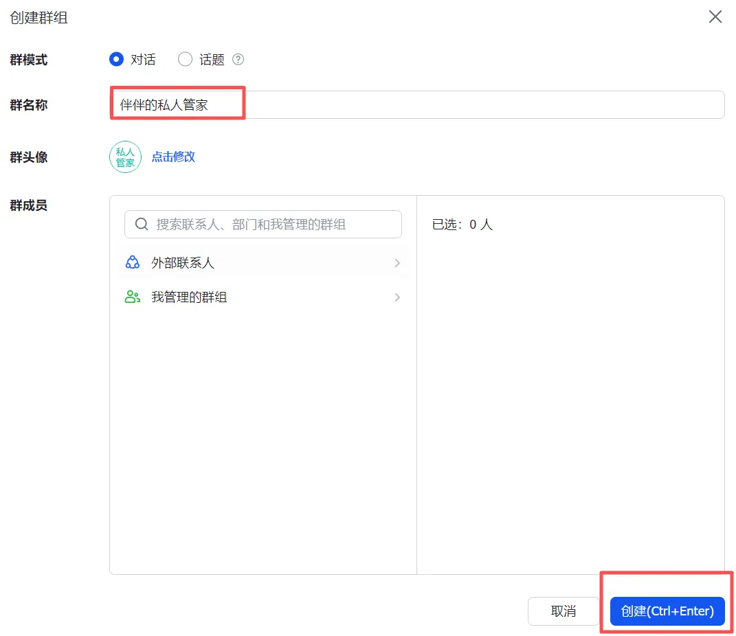 创建群组——输入群名字——点击创建
