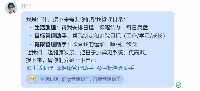 这里我选择了方案一,生活助理也包含了时间管理,所以我只需要再创建2个机器人就行。