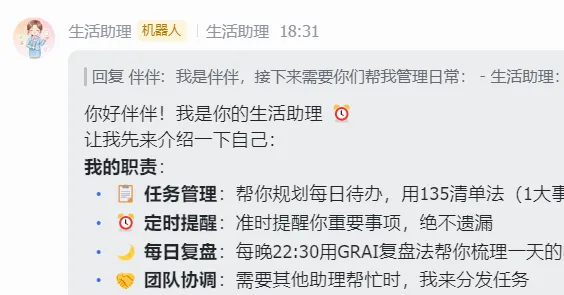 如果每个机器人都回复了——说明你的AI团队已经跑起来了。