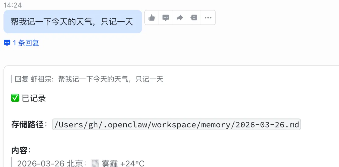 举例:当我在对话框输入保存文件到哪个地方,自动会写入MEMORY.md;
