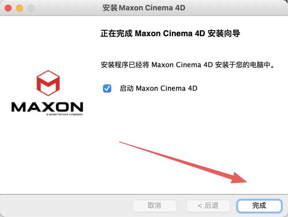 温馨提示:不要取消【启动Maxon Cinema 4D】勾选,让软件启动一次出现第9步窗口关闭即可。