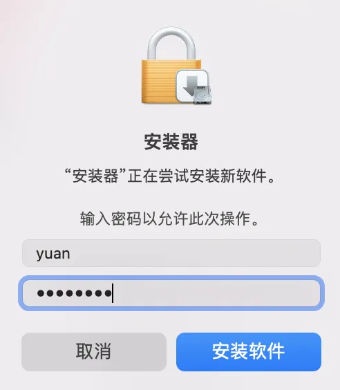 14.输入你的电脑开机密码,点击安装软件。