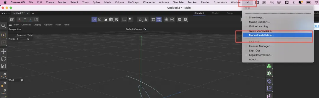 17.打开软件后是英文,若需使用中文版,点击Help菜单中【Manual Installation】。