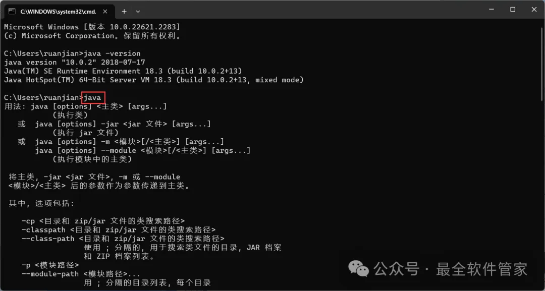 21、输入:java,,按下键盘上的【Enter】回车键,得到下列反馈