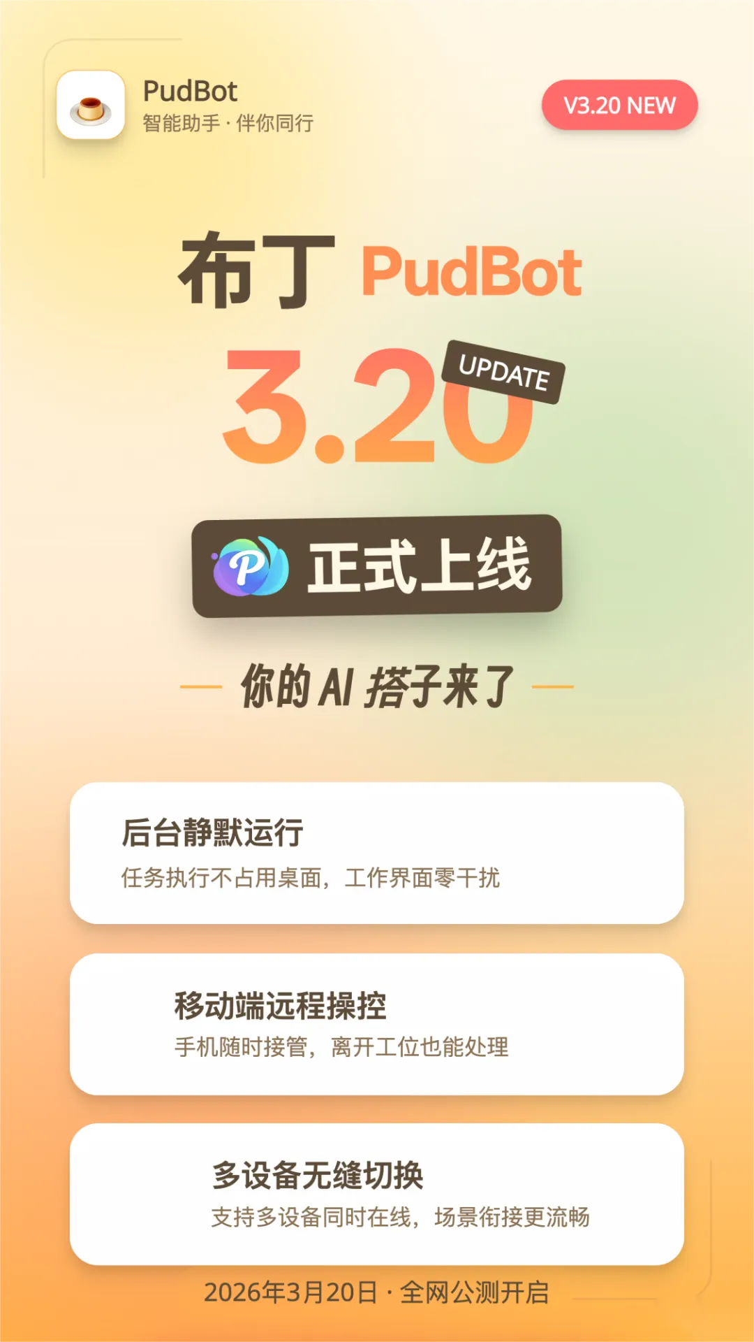 首先,要跟大家公布一则好消息。布丁PudBot在3月20日已正式上线。在此谢谢各位布丁粉丝的耐心等待。若想试用,可以联系我们拿兑换码~ 详情留意官网(pudbot.com)和 布丁PudBot 的小红书官方帐号。