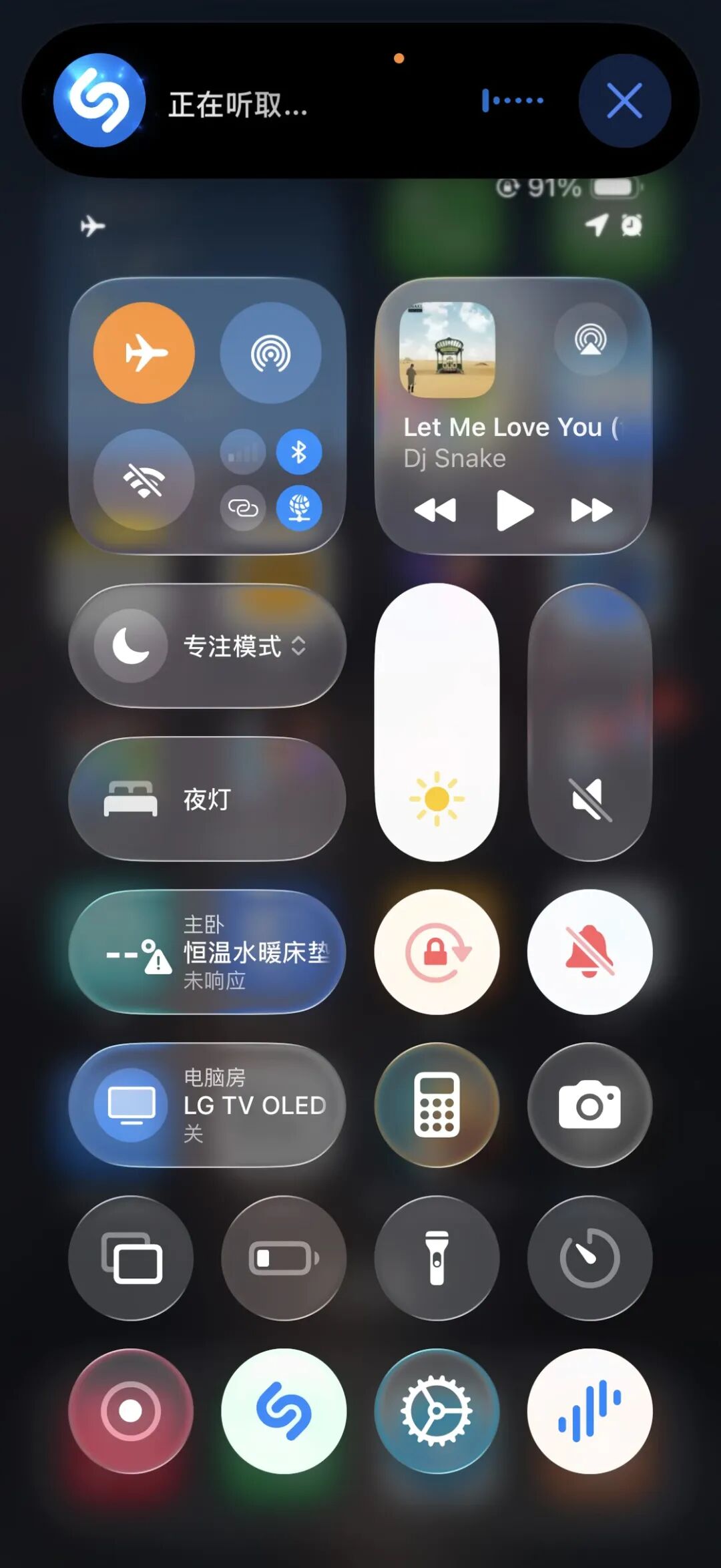 我们可以在控制中心中调用 Shazam 来进行音乐识别,不过这个功能依赖网络连接,Shazam 需要将音频发送到云端的服务器进行处理和识别。如果网络连接不佳,Shazam 就无法进行音乐识别。