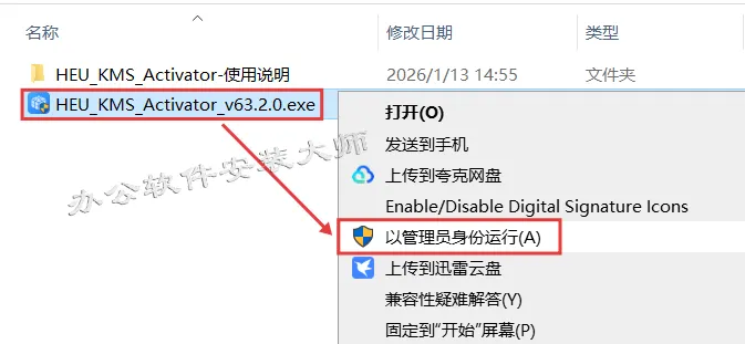 2.鼠标右键以管理员身份运行【KMS.exe】