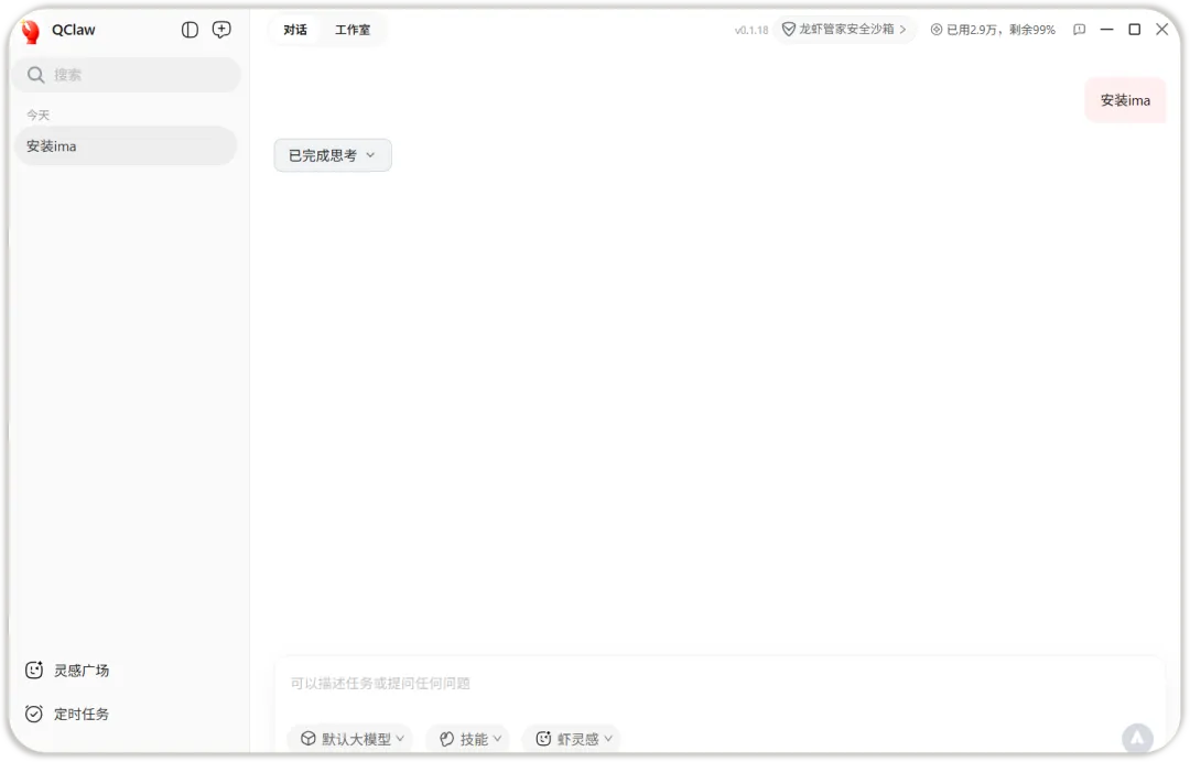 5.QClaw使用主界面。