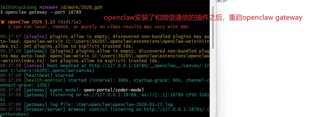 然后启动openclaw服务: