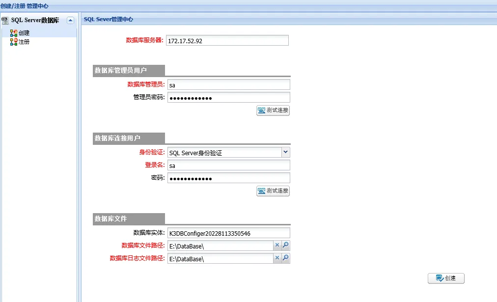 数据库管理员用户:能连接数据库服务器的管理账号和密码,一般为sa
