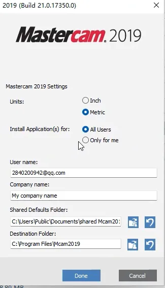 11、点配置更改安装路径,单位选项默认,用户名、公司名称,选项随意填写,安装路径,直接将前面的C盘改成你自己想要安装的路径,也可以点浏览进行更换,下面的目标文件夹设置也一样,然后点Done返回