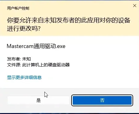 19、返回到刚开始解压出来的安装包,找到Mastercam通用驱动文件夹打开,然后以管理员身份运行如下图程序,然后点是